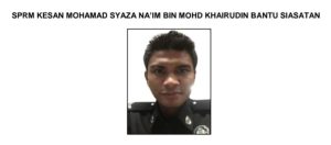 Meanwhile, in a separate statement, the MACC also traced a local man Mohamad Syaza Na’im Mohd Khairudin, 30, whose last address is A4-G06, Lorong Pauh Indah 3, Taman Pauh Indah, 13500 Permatang Pauh, Penang.